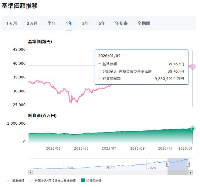 三菱UFJ国際-eMAXIS Slim 米国株式(S&P500)運用成績推移 2026年1月