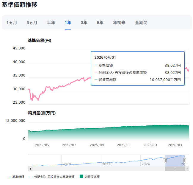 三菱UFJ国際-eMAXIS Slim 米国株式(S&P500)運用成績推移 2026年4月