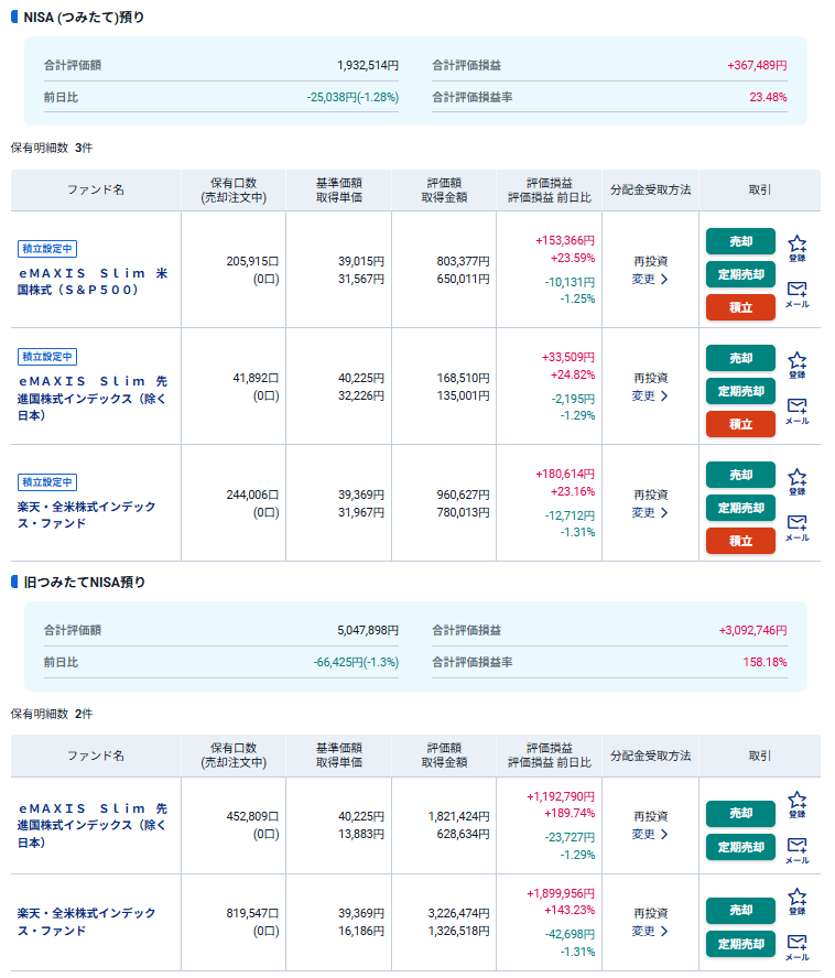 NISA(旧つみたてNISA)実績内訳 7年5ヶ月目